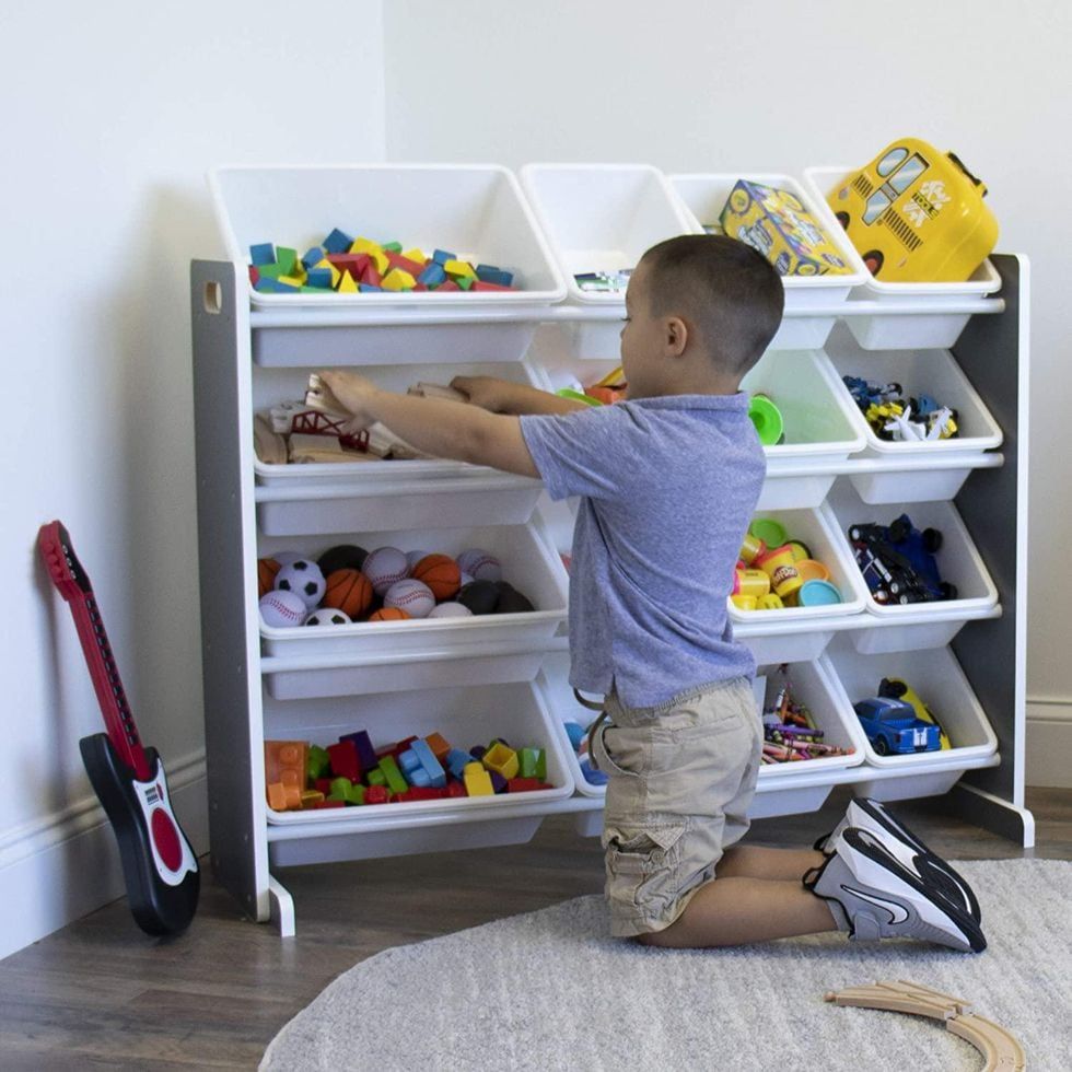 “Clean up, clean up, everybody do your share.” Do you remember those lyrics? If you have little ones at home, you’ve likely uttered a similar phrase a time or 20 to get them to put away their toys. This toy organizer with 16 bins speeds up the process of cleaning things up by creating open-air storage that even the littlest mess maker can figure out.