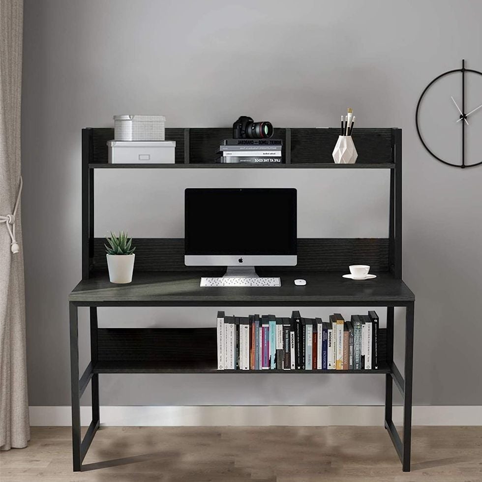 It’s hard to find a desk that is both storage-friendly and not humongous. This one, which includes a hutch and a bookcase, accomplishes both tasks. Save storage space while enhancing your storage options for right around 100 bucks, which is a great deal. The desk surface is especially large at 47 by 22 inches, and the placement of the bookshelf is both useful and well-placed.