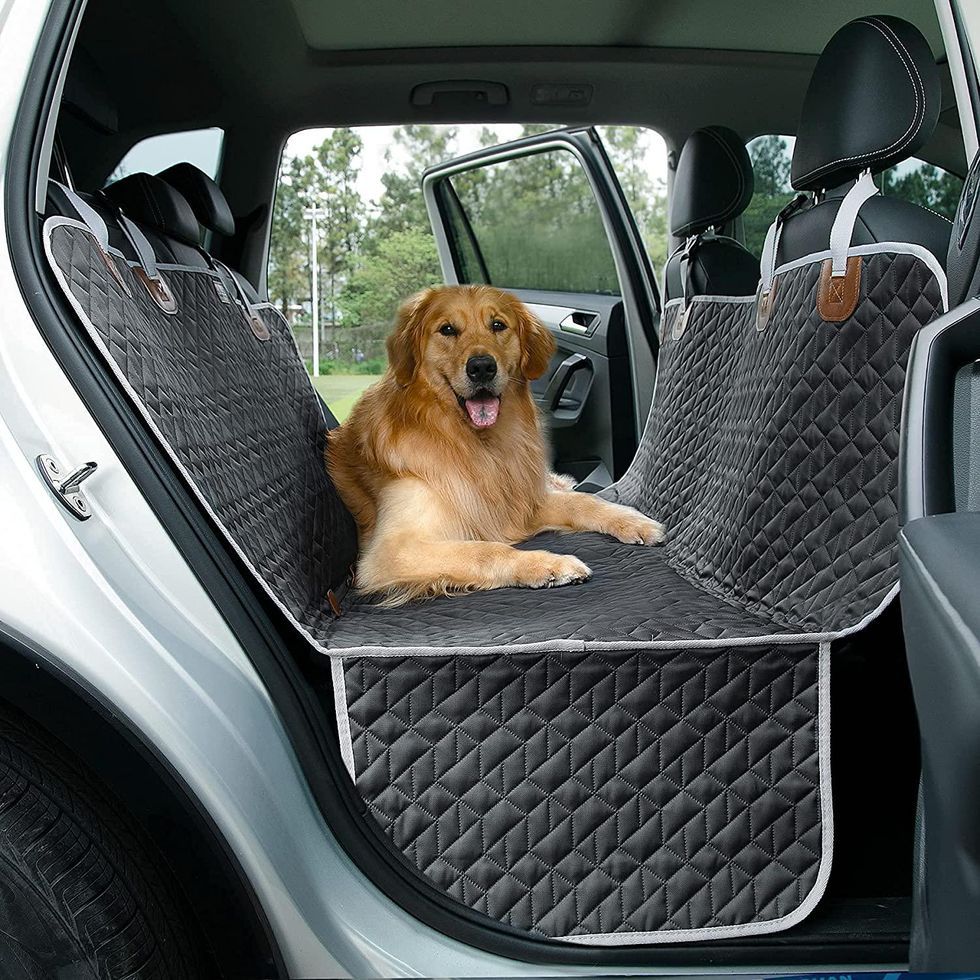 If you travel with your dog more than you travel without him, you need to invest in one of these waterproof pet seat covers. This one provides a barrier to mud, dirt, and fur by extending to cover your backseat. The included buckles and anchors prevent the cover from sliding around, and the flaps on each side preventing scratching when your pup jumps into the car. There’s also a storage pocket for pet toys.