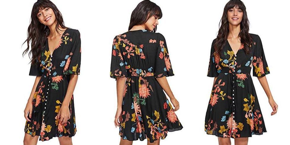 Did someone say cocktails by the pool? Then this floral party dress needs to be on your wish list. This buttoned-down dress looks great with a pair of black or tan heels and voila, that’s all you’ll need on a hot summer’s night. I’m buying this dress in black, but it also comes in six other options.