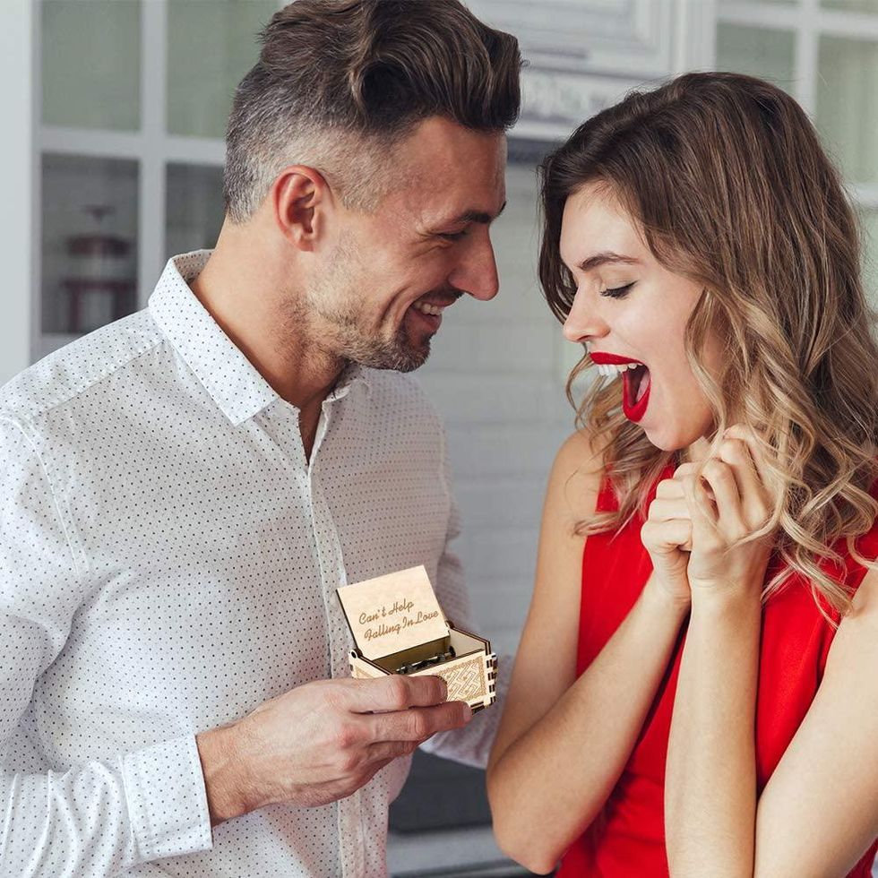 Maybe you don’t play an instrument. You might not even be able to carry a tune in a bucket. But, you can still give the gift of music with this wooden engraved music box that plays, among other tunes, “Can’t Help Falling In Love.” For less than $15, this hand-cranked music box will fit in the palm of his or her hand and deliver notes of romance to your beloved.