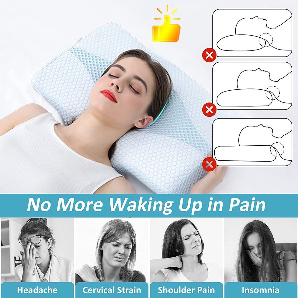 The memory foam core boosts spinal cervical alignment leading to less neck pain.