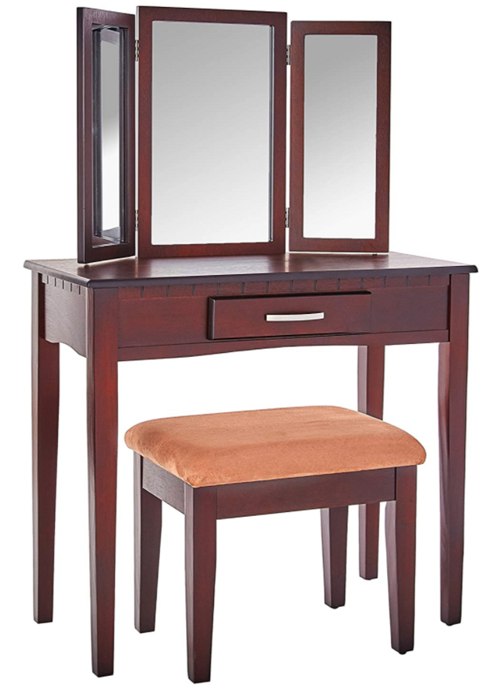 Even better, Amazon has a ton of great vanity sets and makeup tables for you to choose from. You won’t have to go sorting through a hundred different options or go to a furniture store to pick something. Instead, you can sort through our short, easy list of Amazon’s best and pick out a vanity that’ll complement your room perfectly!